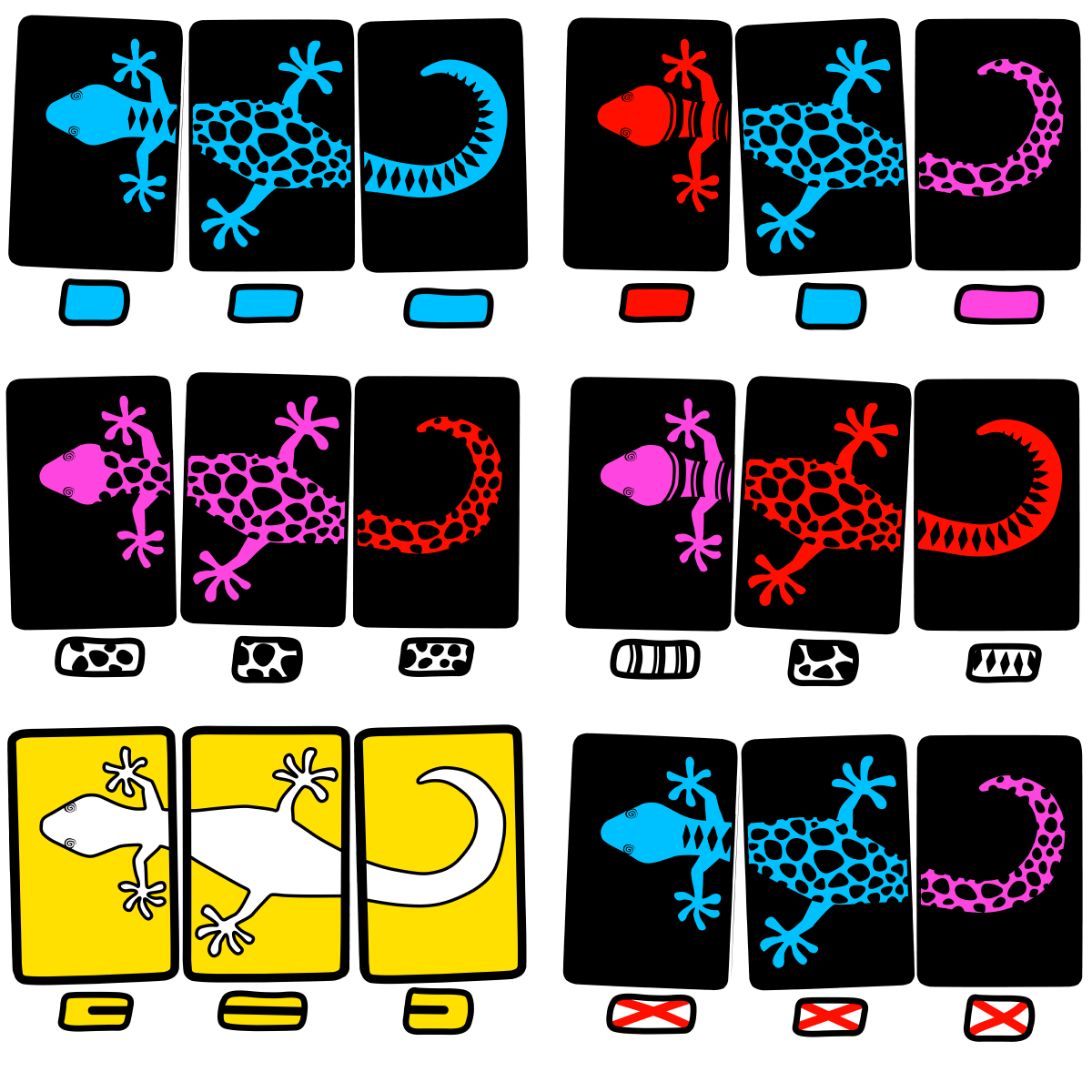 De ‘gouden’ Dizzy Lizzy kaarten zijn nét even anders maar toch weer hetzelfde: Je kunt namelijk winnen door de laatste kaart aan een drie gouden kaarten combinatie te leggen, maar ze volgen ook dezelfde kleuren en patronen als de rest van de kaarten, en kunnen net als alle andere kaarten gecombineerd worden.